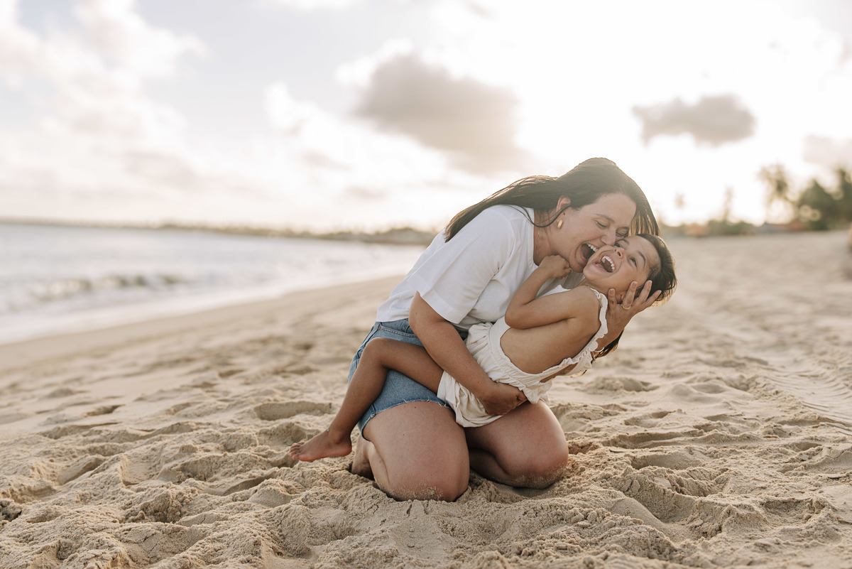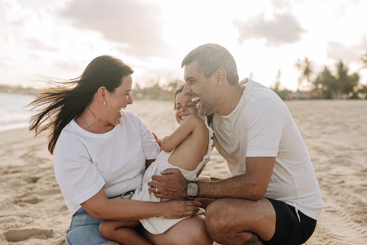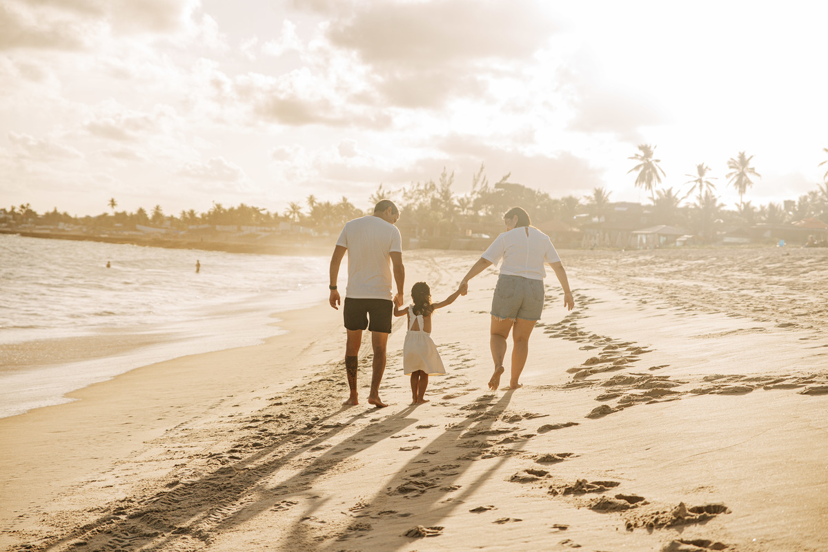 Ensaio de Família na Praia em Recife | Tiago, Mariana e Aurora